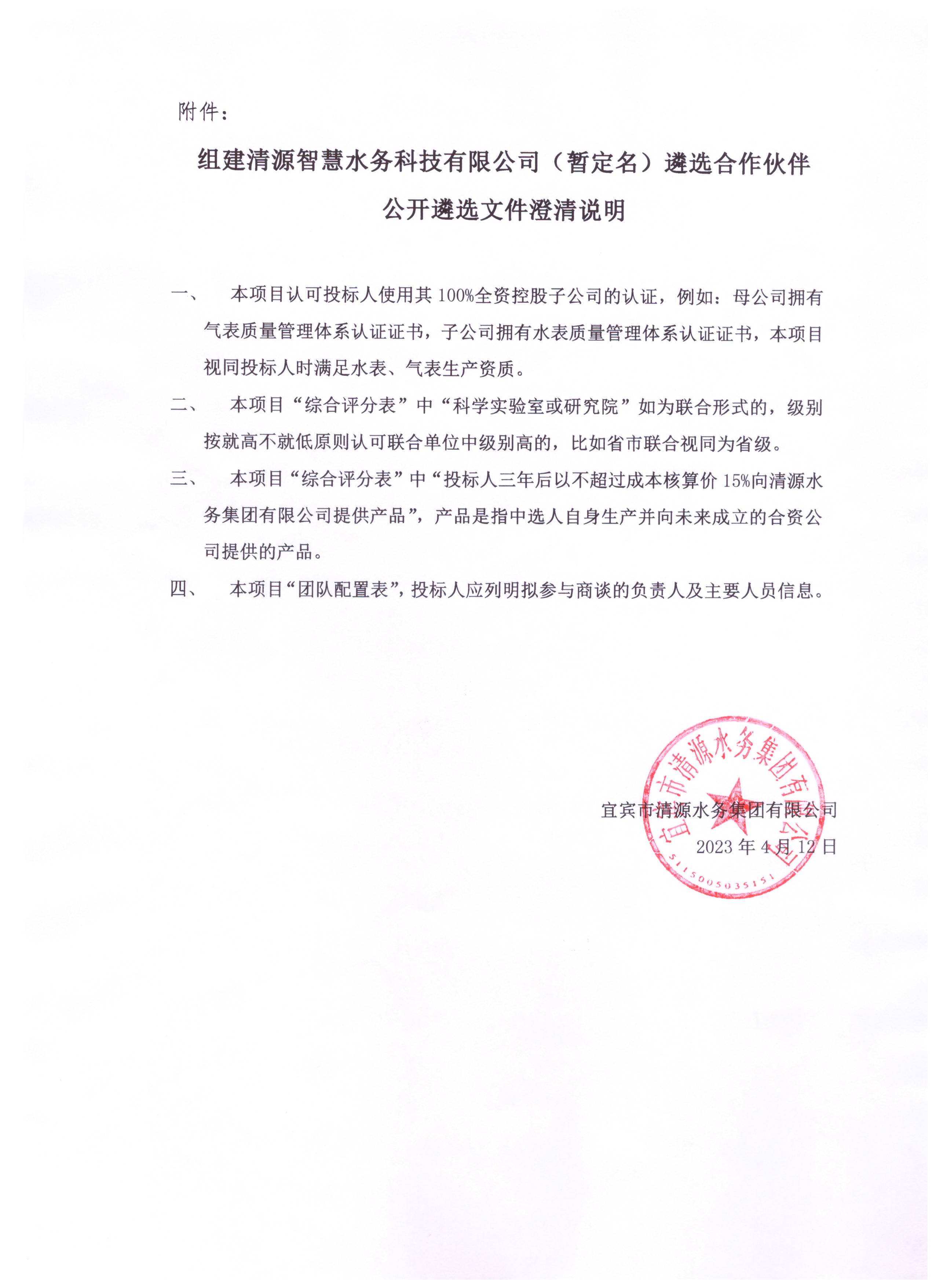 采購項(xiàng)目名稱:組建清源智慧水務(wù)科技有限公司(暫定名)遴選合作伙伴