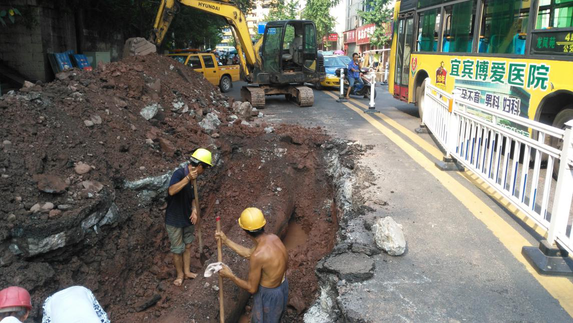 真武路是進(jìn)出舊城區(qū)的主要道路,路窄車流量又特別大,營(yíng)銷部在組織人員、挖機(jī)、搶險(xiǎn)機(jī)具進(jìn)行搶修的同時(shí)及時(shí)與交警部門進(jìn)行協(xié)調(diào),請(qǐng)求派員疏導(dǎo)和指揮交通,確保搶險(xiǎn)工作的順利開展。在維修人員關(guān)閉供水閥門開始搶險(xiǎn)后,技術(shù)工程部調(diào)度室立即與各水廠協(xié)調(diào),通過(guò)調(diào)節(jié)閥門從四水廠調(diào)水供應(yīng)舊城區(qū),盡量將停水范圍縮到最小。此時(shí),心系供水搶險(xiǎn)修復(fù)工作的劉林副總經(jīng)理帶領(lǐng)營(yíng)銷部部長(zhǎng)吳建剛、副部長(zhǎng)黃健一行也迅速趕到現(xiàn)場(chǎng),了解搶修進(jìn)度并親切慰問(wèn)參加搶險(xiǎn)工作的搶險(xiǎn)隊(duì)員們。