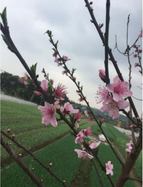 鄉(xiāng)間屋舍旁的桃花,開的正是嬌艷浴滴,引來了一只又一只小蜜蜂,只見它們不停地扇動著翅膀,從這一朵花飛向另一朵花,忙得不亦樂乎。
