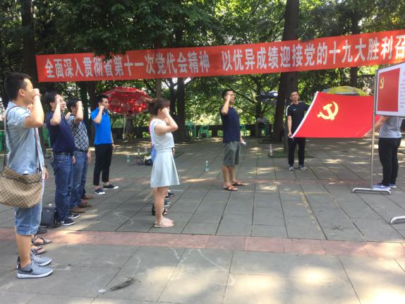 參觀完畢后,全體黨員來到趙一曼烈士雕像前,在支部書記衡洪飛的帶領(lǐng)下,對黨旗高舉右手,重溫入黨誓詞,現(xiàn)場錚錚誓言,鏗鏘有力。隨后,支部書記衡洪飛圍繞《四川省第十一次黨代會精神》為全體黨員上了堂生動的黨課,并組織黨員積極交流參觀感受和學(xué)習(xí)省第十一次黨代會精神的心得體會。黨員高峰同志抒發(fā)了自己的心聲:通過對趙一曼烈士身前英雄事跡的回顧,想到了他當兵時候的事,在參加越戰(zhàn)時他曾主動提出上前線打仗,當時他的很多戰(zhàn)友都犧牲了,但作為一名共產(chǎn)黨員他從未想過要退縮,“我們黨員是有信仰的,我們每個黨員心里是裝著國家和人民的”。