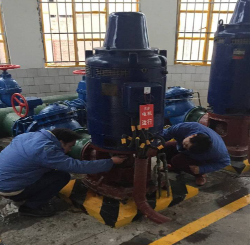 機(jī)修人員正對(duì)供水設(shè)備維修、保養(yǎng)